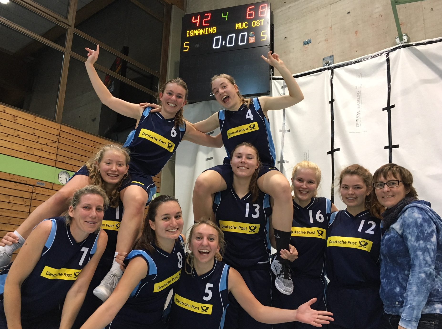 Zwar gewannen die Gastgeberinnen aus Ismaning klar das Aufwärmen, doch das Spiel ging am Ende mit 68:42 deutlich an den TSV München-Ost. Motiviert und konzentriert starteten die Ostlerinnen in das Spiel und konnten so bereits in die erste Viertelpause mit einem Vorsprung von 15 Punkten gehen. Die Zonenverteidigung der Gegnerinnen konnte gut ausgespielt werden, wodurch immer wieder einfach gescored wurde. Auch im zweiten Viertel ging es konzentriert weiter, sodass die Damen ihren Vorsprung zur Halbzeit auf 22 Punkte ausbauen konnten. Doch die Ismaningerinnen gaben nicht auf und starteten im dritten Viertel eine kleine Aufholjagd, durch die sie sich noch einmal auf einen 15 Punkte Rückstand herankämpften. Auch gegen die Pressverteidigung der Gastgeberinnen bewahrten die Damen von Ost stets Ruhe und konnten so verhindern, das der Vorsprung weiter verkürzt wurde. Insgesamt verlief die zweite Halbzeit nicht ganz so souverän wie die erste, jedoch war das Spiel zu keinem Zeitpunkt ernsthaft gefährdet. Alle Spielerinnen erhielten an diesem Tag längere Einsatzzeiten und konnten unter Wettkampfbedingungen die Spielsysteme durchlaufen. Da klappte verständlicherweise noch nicht alles, aber trotzdem ging der Sieg verdient an die Damen des TSV München-Ost.