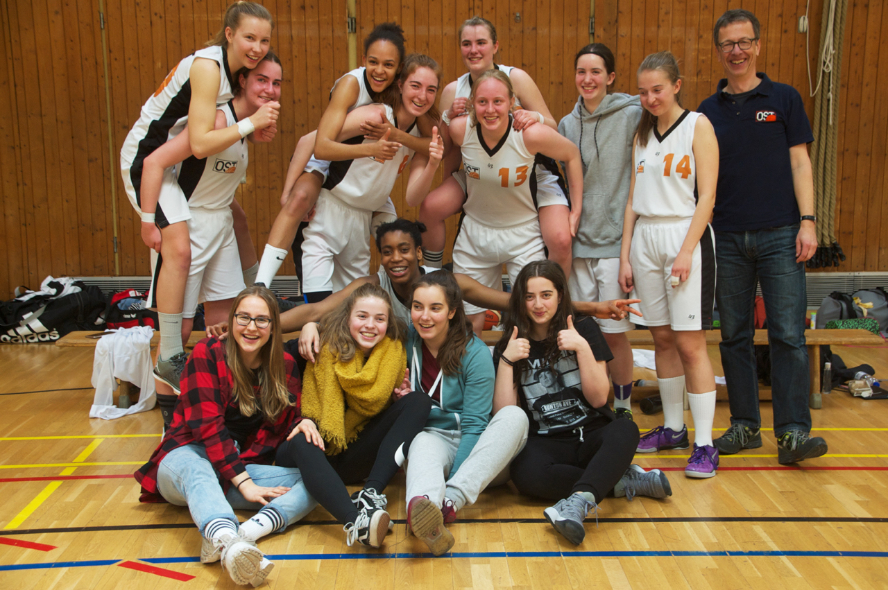 Doch diesmal: sehr gute erste Halbzeit, bis zu 15 Punkte Vorsprung, 38:31-Führung nach 20 Minuten. Fürchterliches drittes Viertel, 43:49-Rückstand. Mitte des vierten Viertels immer noch sechs Punkte zurück, aber nun folgt ein 7:0-Lauf von Ost. Kräftiger Rückenwind durch die lautstarke Unterstützung der ca. 25 mitgereisten Fans (die Heimmannschaft konnte nicht mal auf halb so viel Publikum zählen). Eine Minute vor Schluss Unentschieden. 8 Sekunden vor dem Ende immer noch Unentschieden, zwei Freiwürfe für Sophia K, zweiter drin. Auszeit Wasserburg, Einwurf im Vorfeld, aber sehr gut verteidigt, kein Wurf von Wasserburg, sondern Ballgewinn Ost. Foul an Hanna, noch eine Sekunde zu spielen, beide Freiwürfe drin, nochmal Auszeit Wasserburg und Einwurf im Vorfeld, der finale Wurf geht daneben, 63:60 – Oberbayerischer Meister!